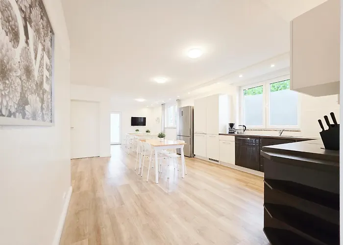 Die Unterkünfte ist mit einer voll ausgestatteten Küchenzeile ausgestattet, die unter anderem über einen einen Herd und einen Geschirrspüler verfügt. Die Bushaltestelle Karl-Geusen-Strasse liegt in der Nähe von dem 185 m² großen Apartment.